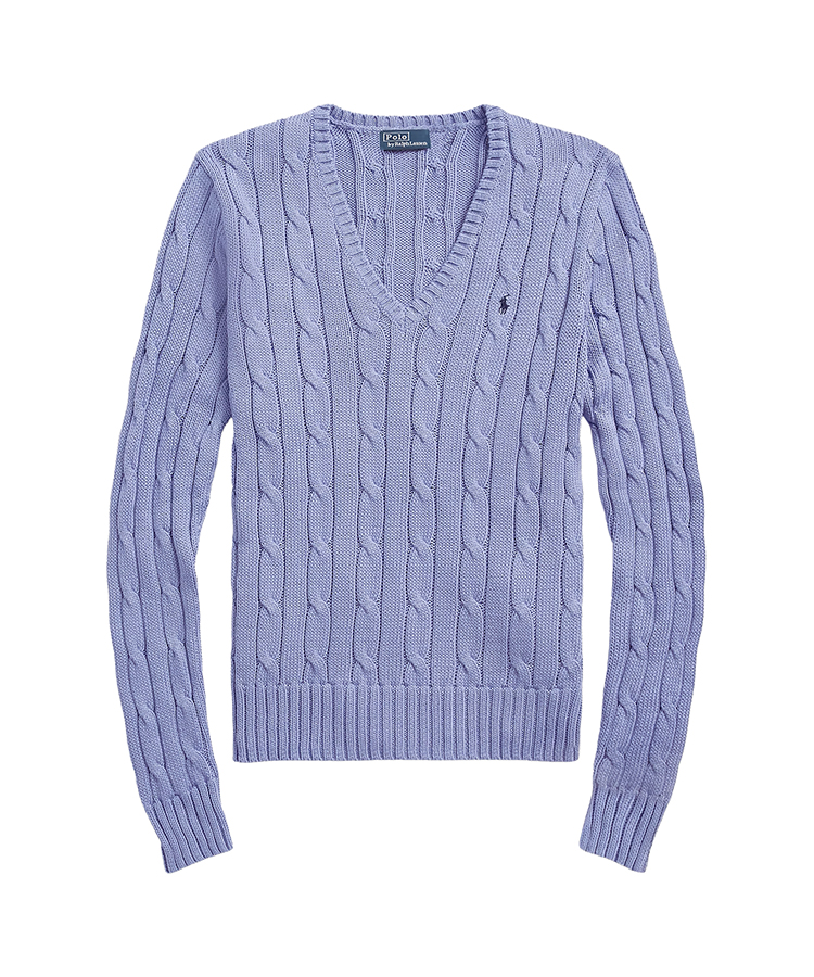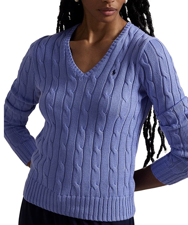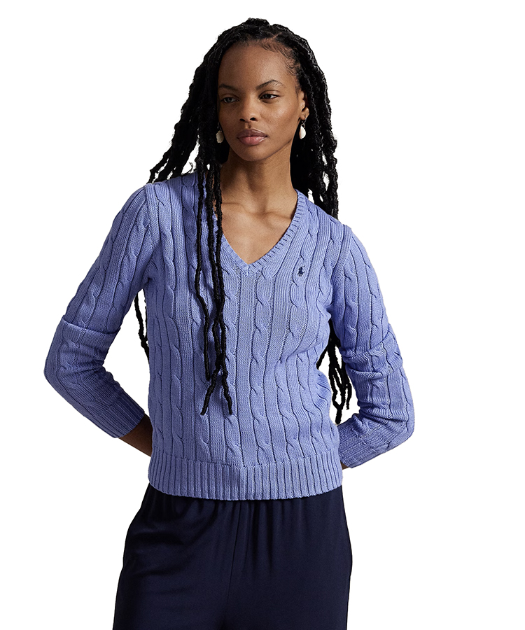 Polo Ralph Lauren Women’s Cable-Knit Cotton V-Neck Sweatshirt